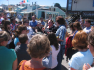 மேலும், சில உதாரணங்கள் கீழே, என் கைவரிசையில்: (படத்தை க்ளிக்கி பெருசா பாத்தீங்கன்னாதான் மேட்டர் புரியும்). tour-guide ஆத்தா, முதல் படத்தில் பளிச்னு தெரிஞ்சாலும், மற்ற தலைகளும் கவனத்தை சிதறிடிப்பதால், ஆத்தாவைத் தவிர மற்றவைகளை ப்ளர் ஆக்கியாச்சு. அதேமாதிரி, விவேகானந்தரும் தடாகமும் 'பளிச்' என்று தெரிய, பின்னாலிருக்கும் சமாச்சாரம் ப்ளர் செய்யப்பட்டுள்ளது.